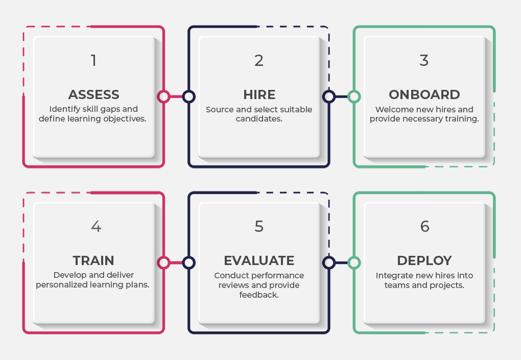 Technogen’s Hire-Train-Deploy is a comprehensive program designed to address organisations’ recruitment challenges. Our program involves hiring, training, and deploying employees, ensuring that they meet your organisation's talent requirements and work culture. By taking a holistic approach, we can help organisations onboard employees ready to hit the ground running from day one.